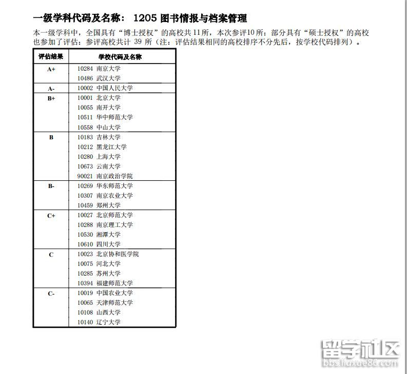 全國高校學科評估結果:一級學科圖書情報與檔案管理大學排名
