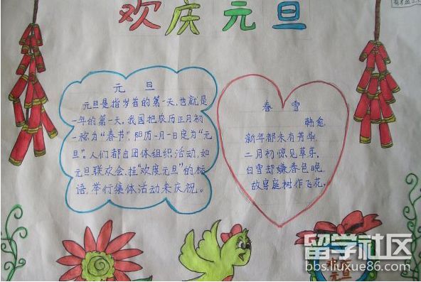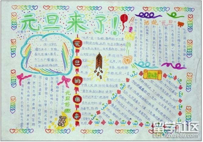 元旦節(jié)是很多人喜歡的節(jié)日,小學(xué)生簡單漂亮的元旦節(jié)手抄報(bào)有哪些呢?以下是由出國留學(xué)網(wǎng)小編為大家精心整理的“小學(xué)生簡單漂亮的元旦節(jié)手抄報(bào)”,僅供參考,希望能幫助到您。更多手抄報(bào)在出國留學(xué)網(wǎng),敬請您關(guān)注。
