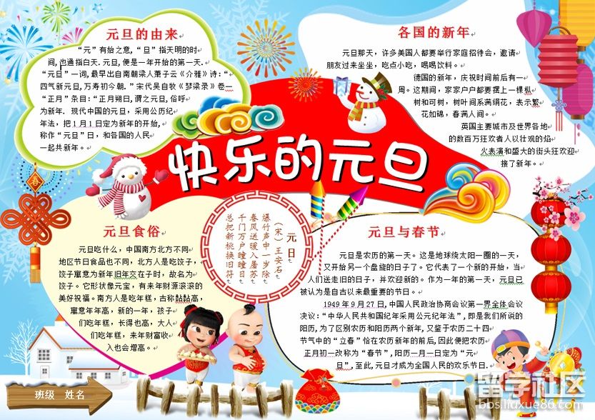“元旦”一詞最早出現(xiàn)于《晉書》,但其含義已經(jīng)沿用4000多年。以下是出國留學網(wǎng)小編為您整理精美元旦手抄報模版,供您參考,希望對你有所幫助,更多詳細內容請點擊出國留學網(wǎng)查看。