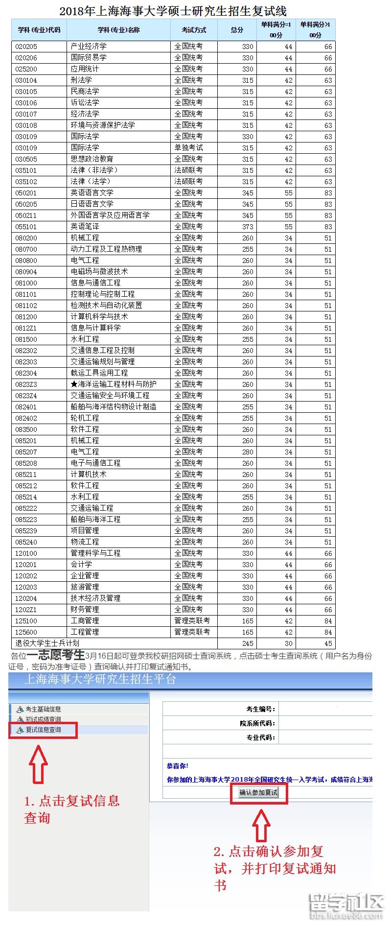 2018年上海海事大學考研復試分數(shù)線及一志愿復試查詢方式