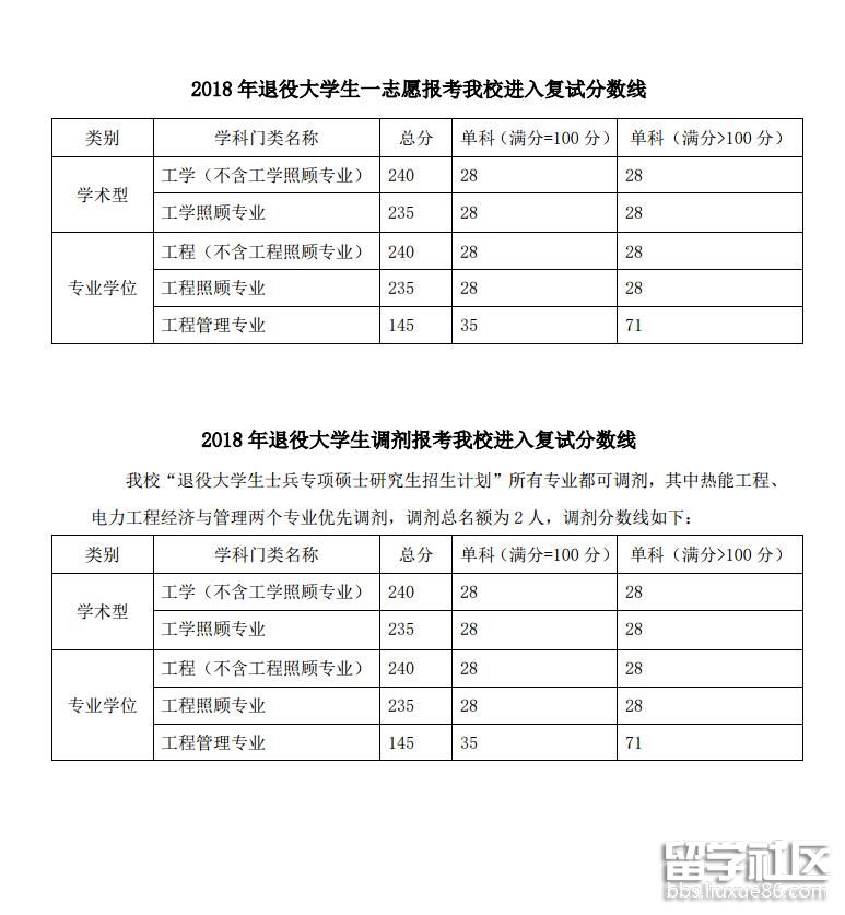上海電力學院2018年退役大學生一志愿和調(diào)劑考研復試分數(shù)線