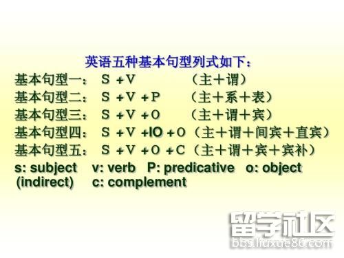 與漢語相似,英語句子是由主語(subject),謂語動詞(verb),賓語(object),表語(predicative),狀語(adverbial),賓語補足語(objectcomplement)等成分組成,按照這些成分的組合方式英語句子可分為五種基本句型。