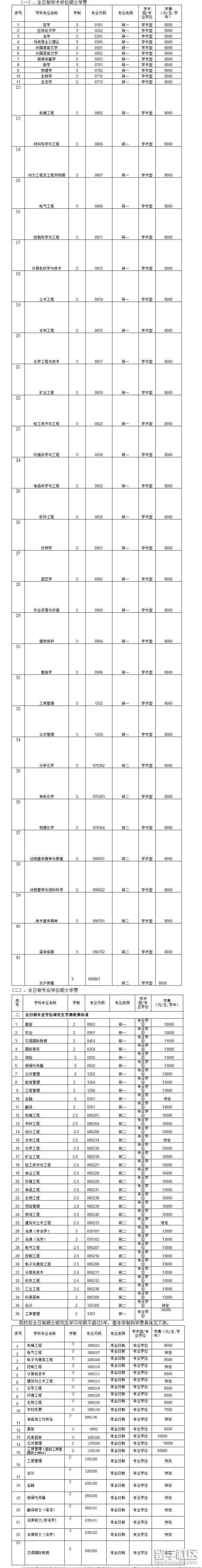 全日制學(xué)術(shù)學(xué)位和專業(yè)學(xué)位各專業(yè)學(xué)費(fèi)具體見下表: