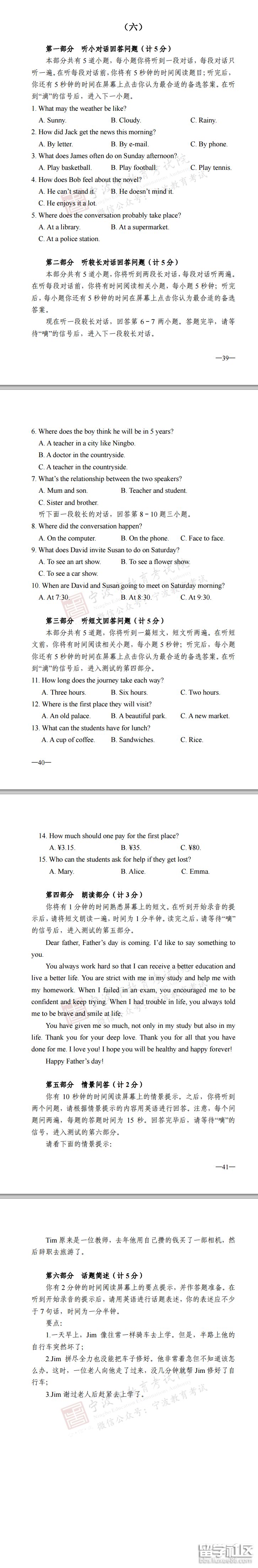 寧波中考英語(yǔ)聽力口語(yǔ)自動(dòng)化考試練習(xí)題答案10套匯總