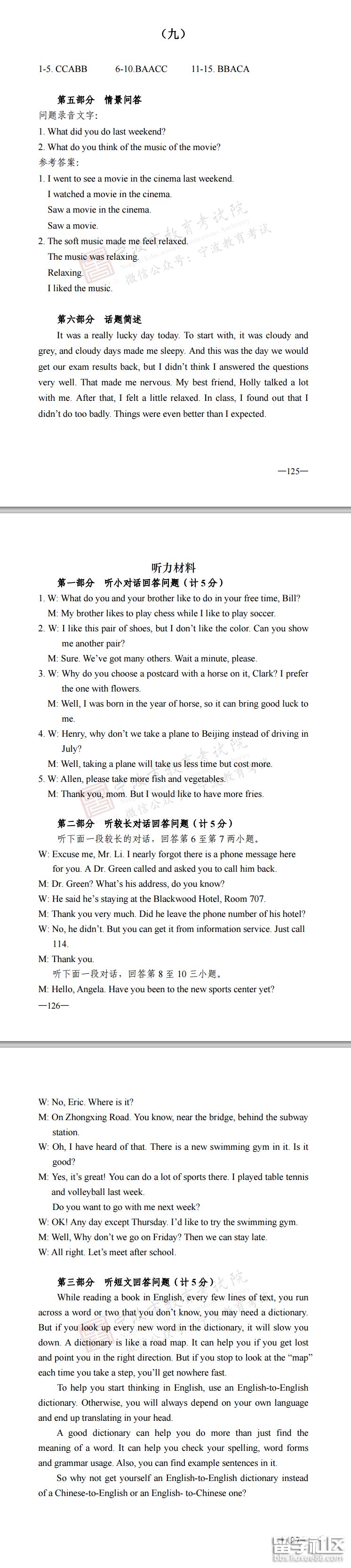 寧波中考英語(yǔ)聽(tīng)力口語(yǔ)自動(dòng)化考試練習(xí)題答案(九)