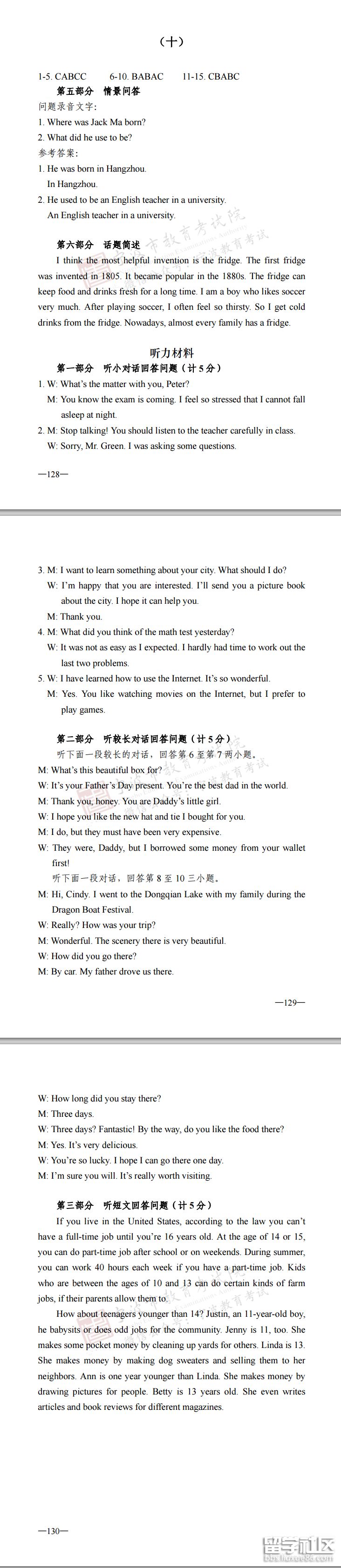 出國留學網中考網為大家提供寧波中考英語聽力口語自動化考試練習題答案(十),更多中考英語復習資料請關注我們網站的更新!