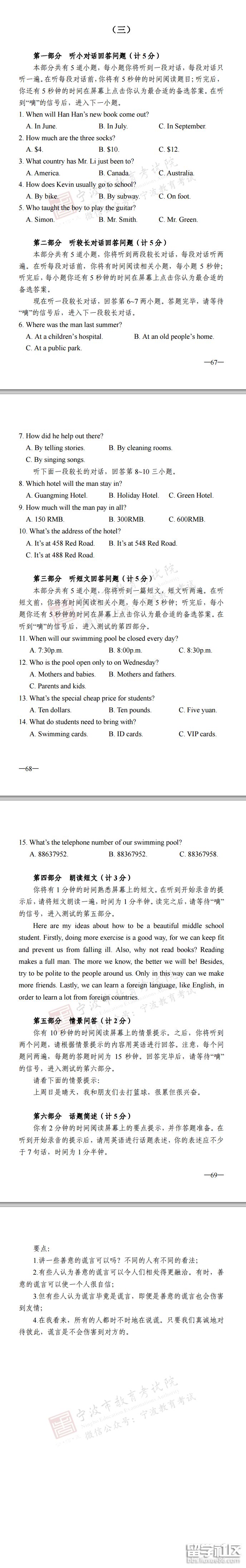 出國留學網中考網為大家提供2018寧波中考英語聽力口語自動化考試模擬題(三),更多中考英語復習資料請關注我們網站的更新!