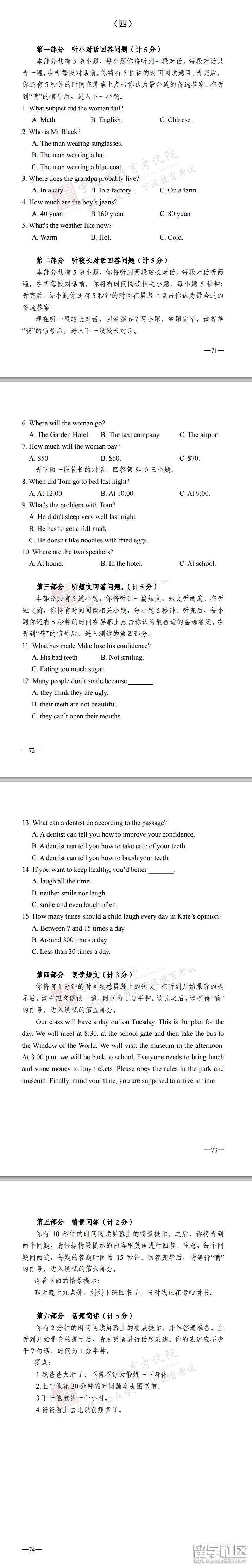 出國留學(xué)網(wǎng)中考網(wǎng)為大家提供2018寧波中考英語聽力口語自動化考試模擬題(四),更多中考英語復(fù)習(xí)資料請關(guān)注我們網(wǎng)站的更新!