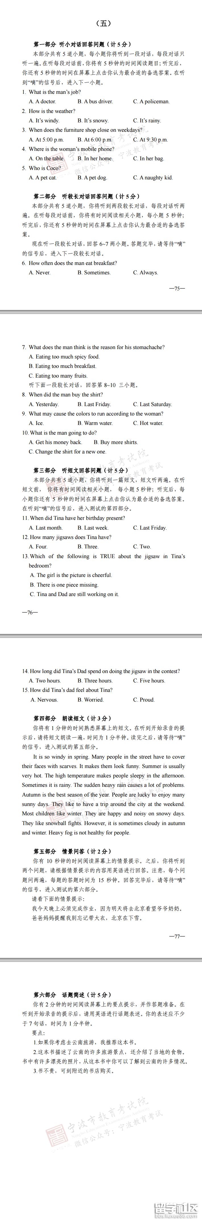 2018寧波中考英語聽力口語自動化考試模擬題(五)