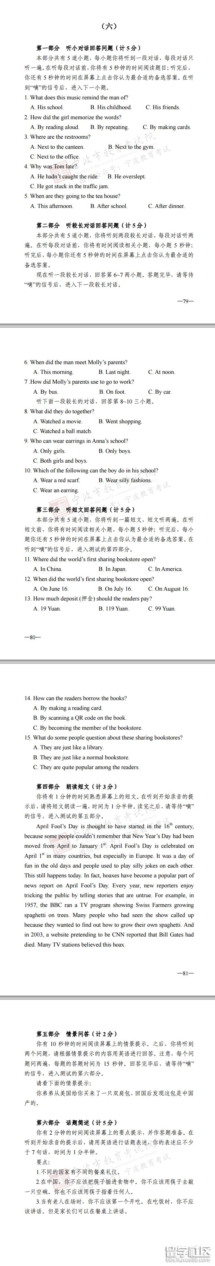 2018寧波中考英語聽力口語自動(dòng)化考試模擬題(六)