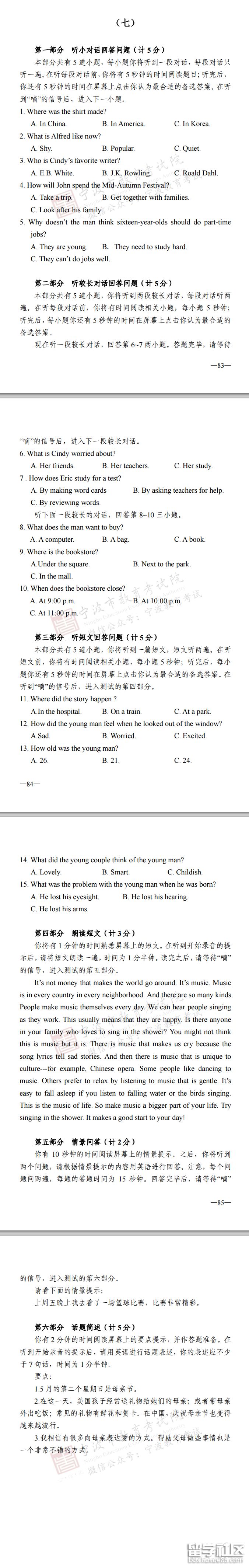 2018寧波中考英語聽力口語自動化考試模擬題(七)