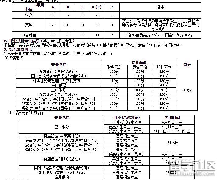 (2)單獨(dú)考試招生考生總綜合成績(jī)(滿分650分)=職業(yè)技能考試成績(jī)(包括技能操作和理論知識(shí))+綜合素質(zhì)測(cè)試成績(jī)。