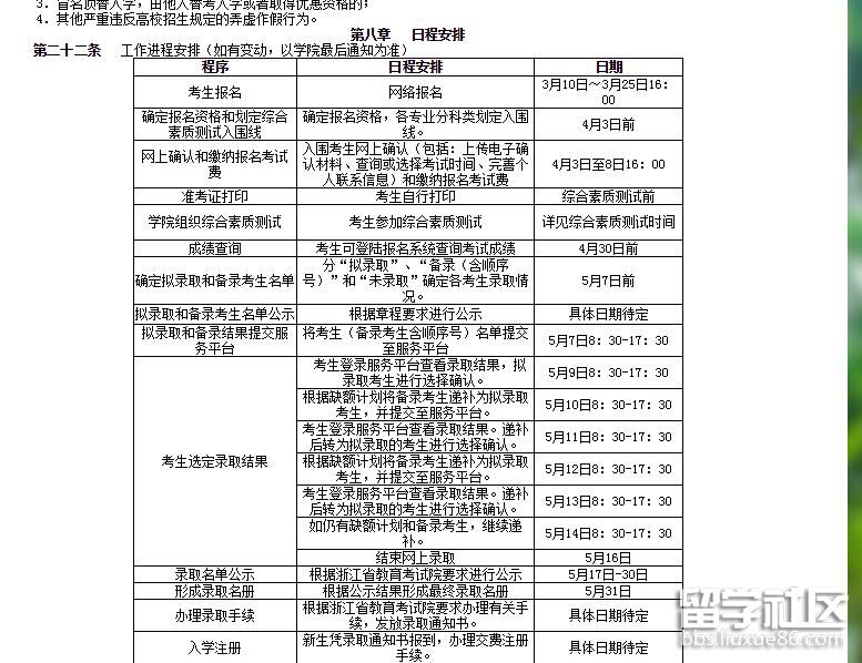 第八條 報(bào)考條件:符合當(dāng)年高考或單獨(dú)考試招生報(bào)考條件,并已辦理浙江省高考或單獨(dú)考試招生報(bào)名手續(xù)的高中畢業(yè)生。且符合下列條件者: