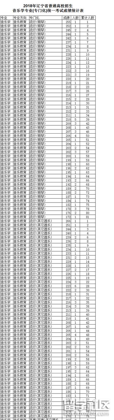 2018年遼寧音樂學(xué)專業(yè)(專門化)統(tǒng)考成績一分一段表