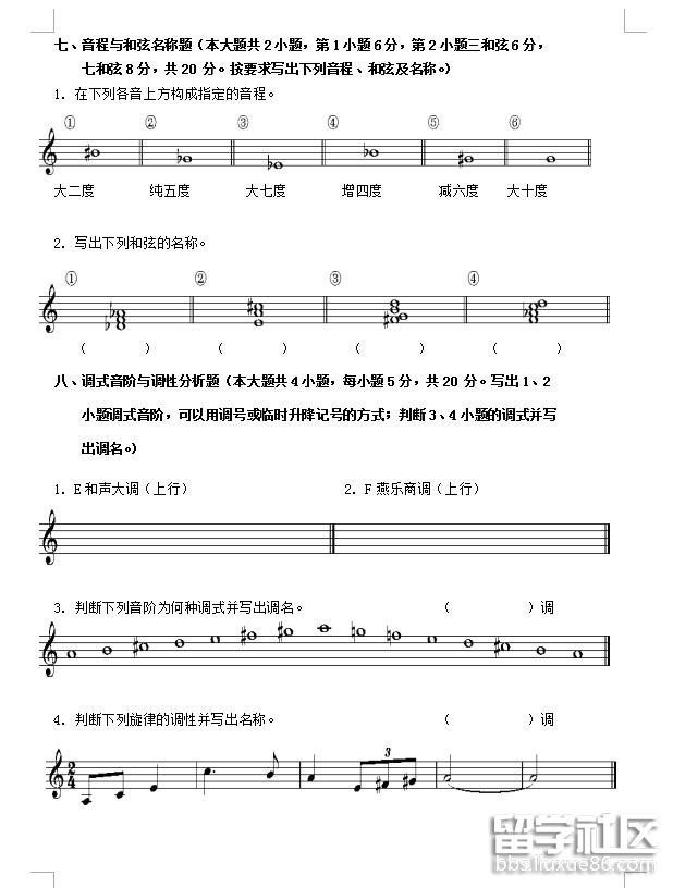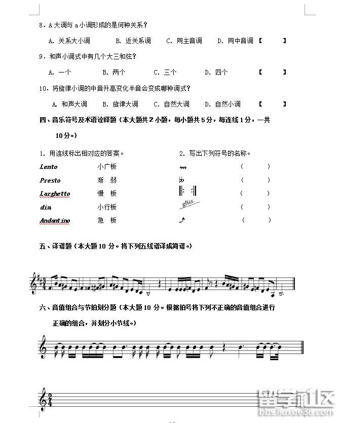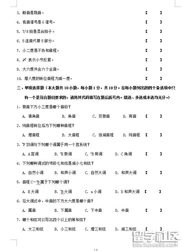 2018廣西樂理考試參考樣卷