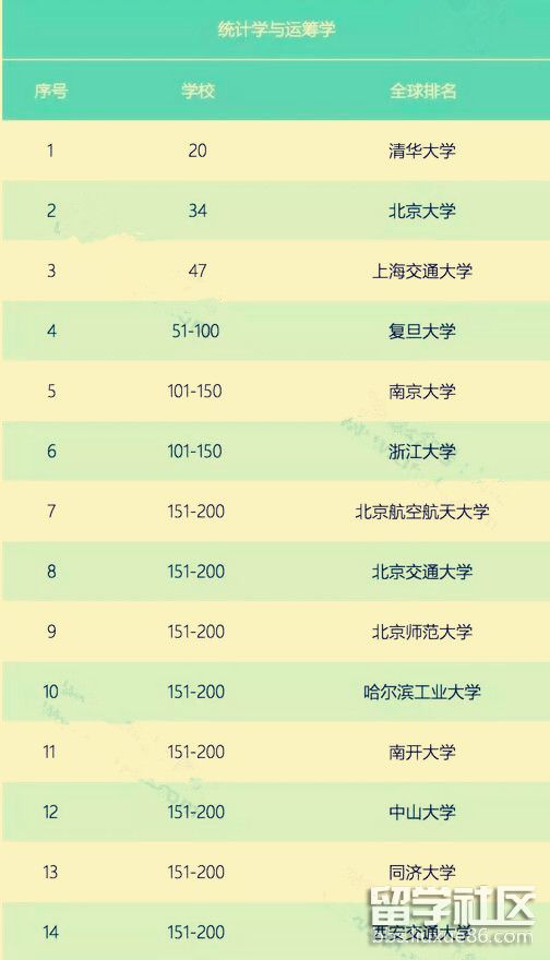 2018QS世界大學(xué)學(xué)科全球排名:統(tǒng)計學(xué)與運籌學(xué)(中國內(nèi)地高校)