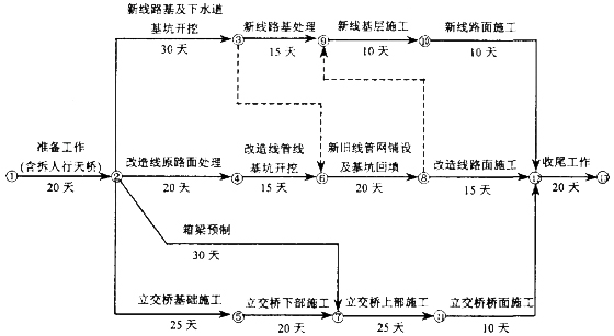 某公司承接了某城市道路的改擴建工程。工程中包含一段長240m的新增路線(含下水道200m)和一段長220m的路面改造(含下水道200m),另需拆除一座舊人行天橋,新建一座立交橋。工程位于城市繁華地帶,建筑物多,地下管網(wǎng)密集,交通量大。