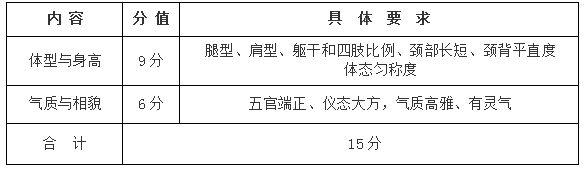 依據(jù)考生的五官、身材比例、腿形、肩形、體態(tài)進(jìn)行評(píng)分。根據(jù)目測(cè)的具體情況進(jìn)行評(píng)分。