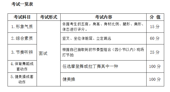 藝術(shù)專業(yè)全省統(tǒng)一考試是全國(guó)普通高考的重要組成部分。本統(tǒng)考模塊適用于本科表演(體育舞蹈、健美操),??茋?guó)際標(biāo)準(zhǔn)舞、體育藝術(shù)表演等專業(yè),主要測(cè)評(píng)考生學(xué)習(xí)體育舞蹈、健美操等應(yīng)具備的基本專業(yè)素質(zhì)和能力,為高校選拔提供基本依據(jù)。