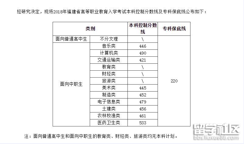2018福建高等職業(yè)教育入學(xué)考試本科控制分?jǐn)?shù)線及??票5拙€