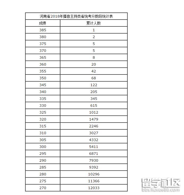 河南省2018播音主持類省統(tǒng)考分數(shù)段統(tǒng)計表