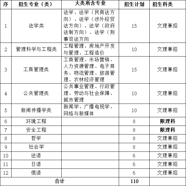 招生計劃為110人。