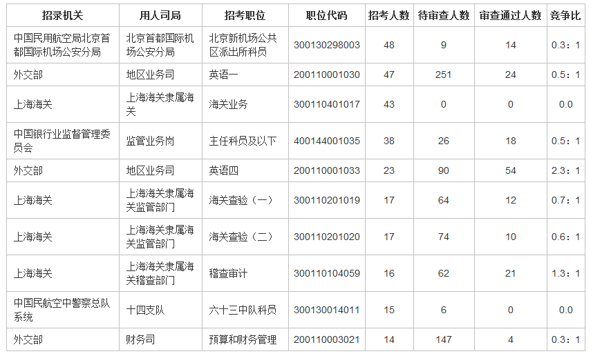 在報(bào)名的第一天,國(guó)家公務(wù)員考試網(wǎng)特關(guān)注各系統(tǒng)應(yīng)屆生可報(bào)考的招錄人數(shù)較多的職位,為考生提供報(bào)考數(shù)據(jù)分析。