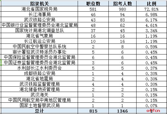 2018年湖北國家公務員考試招錄1346人創(chuàng)新高(國稅占比超七成)