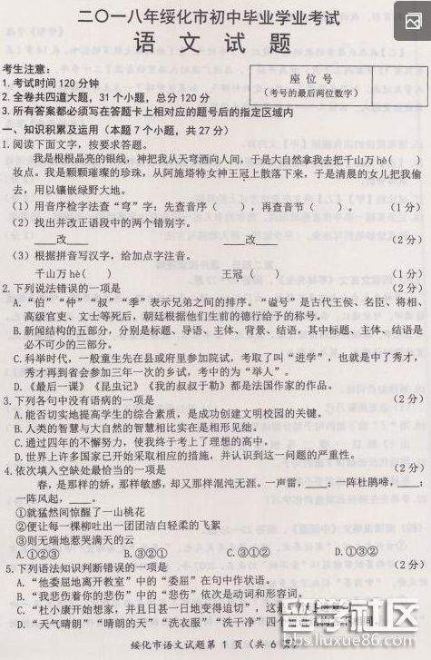 中考后不要迷茫,出國留學(xué)網(wǎng)小編為你帶來《2018年黑龍江綏化中考語文試卷及答案》,我們會在第一時間更新中考成績,請各位考生及家長密切關(guān)注頁面更新,祝大家的中考之路順暢無阻。
