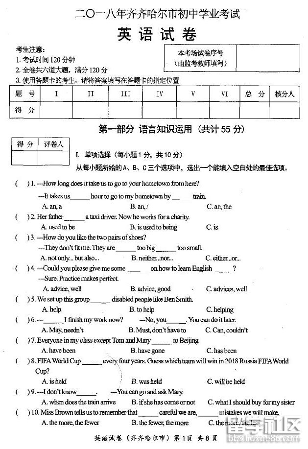 中考過后,青春的年華就像也隨著那一張中考試卷被上帝收走,2018年中考結(jié)束,出國留學(xué)網(wǎng)中考欄目公布了 《2018年黑龍江齊齊哈爾中考英語試題及答案》,無論中考后的人生如何,請不要忘記曾經(jīng)的努力,請繼續(xù)關(guān)注出國留學(xué)網(wǎng)中考欄目!