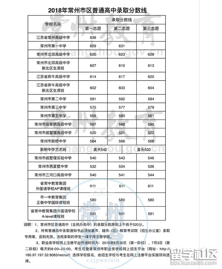 2018年常州市區(qū)普通高中錄取分?jǐn)?shù)線已公布