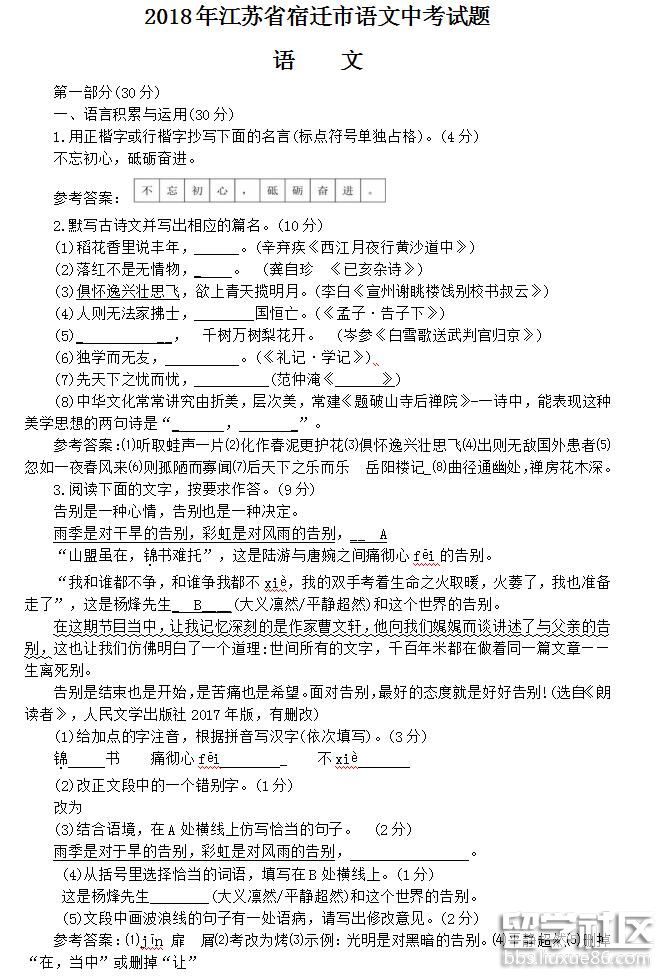 以后的你肯定會感謝現(xiàn)在這么努力的自己,中考要加油哦。本網(wǎng)站小編獻上《2018年江蘇宿遷中考語文試題及答案》,愿你中考順利,青春不悔。