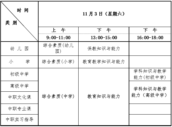 2018年下半年中小學教師資格考試(筆試)日程安排表