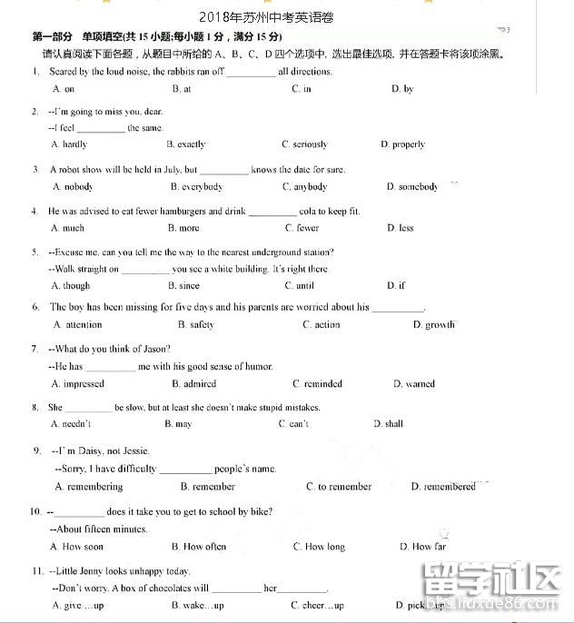本網(wǎng)站中考欄目第一時(shí)間整理出《2018年江蘇蘇州中考英語試題及答案》,希望對(duì)你有幫助。祝廣大考生發(fā)揮自己最好的水平,考出好成績(jī),進(jìn)入理想的學(xué)校!