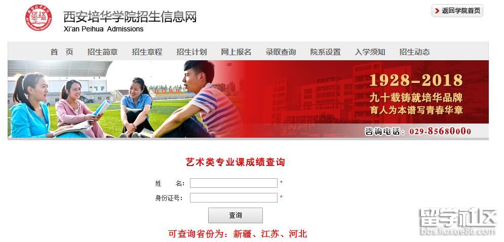 西安培華學院2018藝考成績查詢系統(tǒng)