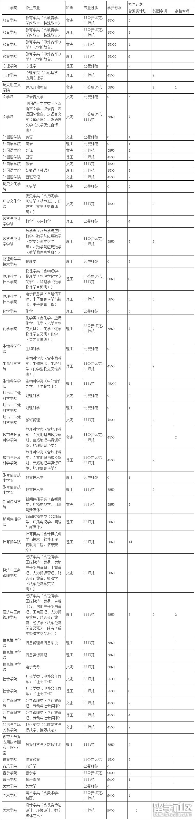 華中師范大學(xué)2018年安徽分專業(yè)招生計(jì)劃表