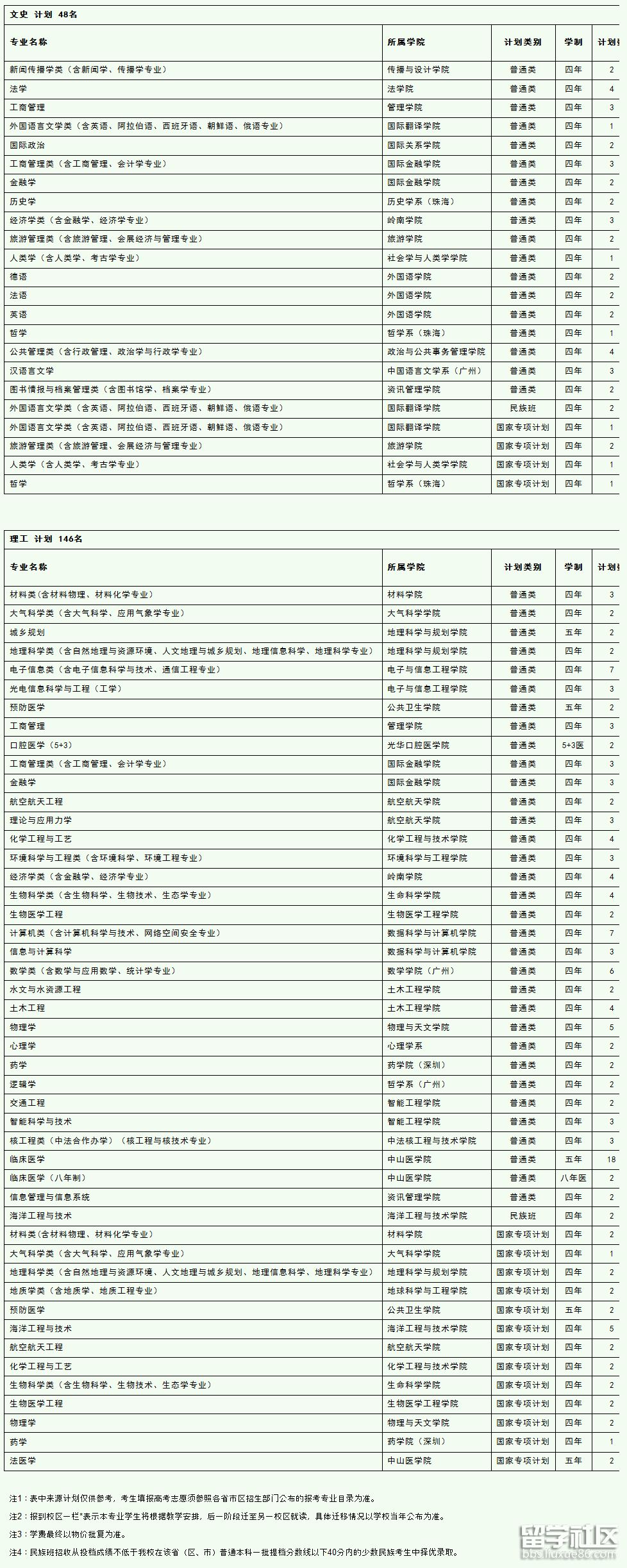 中山大學2018年分專業(yè)招生計劃(湖南)