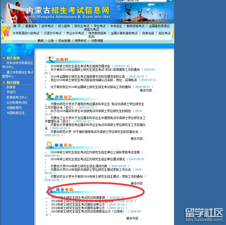 考生通過內(nèi)蒙古招生考試信息網(wǎng)“研究生考試”頻道里的“信息查詢”欄目進(jìn)行查詢考試成績(jī)。