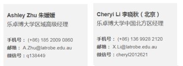 魏睿昊,現(xiàn)任博滿金資首席分析師,是這樣認(rèn)為的:“通過在校期間的學(xué)習(xí),無(wú)論是在實(shí)踐上,還是知識(shí)儲(chǔ)備上,都有非常大的進(jìn)步。大學(xué)所設(shè)計(jì)的課程非常實(shí)用,與現(xiàn)實(shí)工作需求非常貼近,為充分展開職業(yè)生涯的第一步打下了堅(jiān)實(shí)的基礎(chǔ)?!?BR> 通過以上這些校友對(duì)樂卓博大學(xué) (La Trobe University)的評(píng)價(jià),你是否也對(duì)該大學(xué)產(chǎn)生了濃厚的興趣呢!這是一個(gè)走上人生巔峰的機(jī)會(huì),想要成功施展你的抱負(fù),實(shí)現(xiàn)遠(yuǎn)大的理想,千萬(wàn)別錯(cuò)過樂卓博大學(xué) (La Trobe University)這所致力于培養(yǎng)具有全球視野的思想家和影響者的大學(xué)。