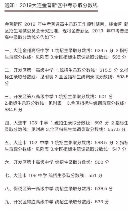 2019年遼寧大連金普新區(qū)中考錄取分?jǐn)?shù)線