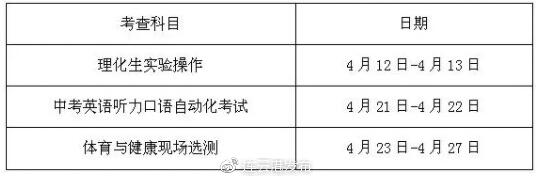 體育與健康現(xiàn)場選測、理化生實驗操作考查由市統(tǒng)一命題,統(tǒng)一考查時間和要求。