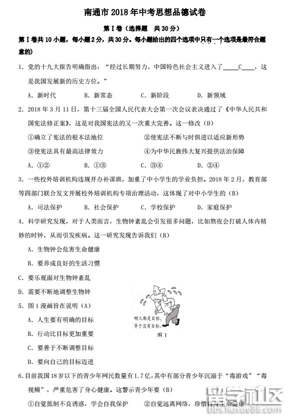 愿你中考金榜題名。本網(wǎng)站中考欄目為你準(zhǔn)備了《2018年江蘇南通中考政治真題及答案》。更多中考資訊盡在本站!敬請關(guān)注!