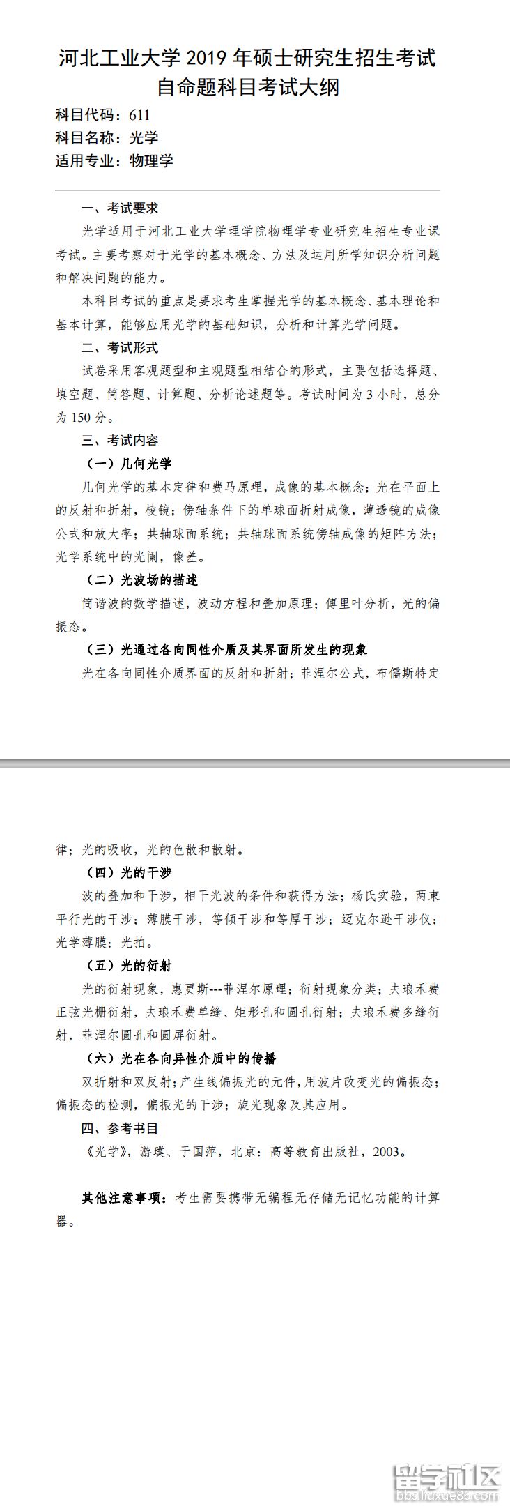 河北工業(yè)大學(xué)2019考研大綱:611光學(xué)