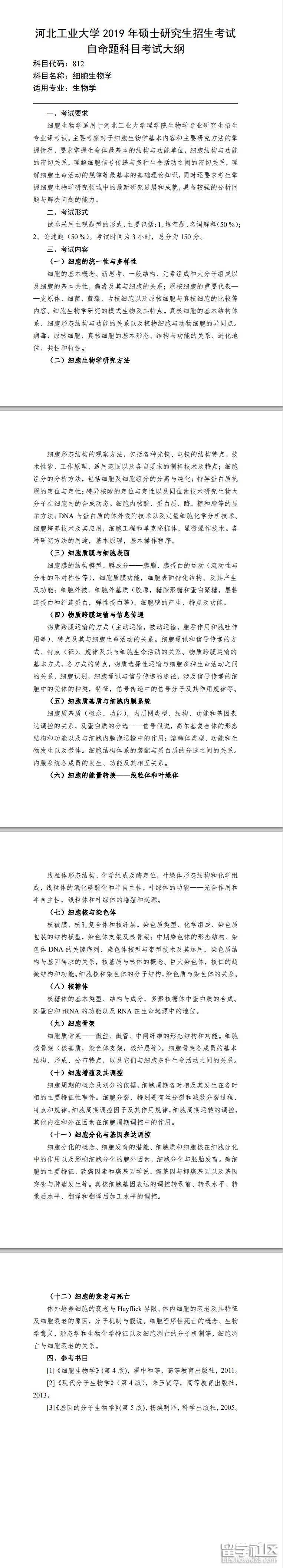 河北工業(yè)大學(xué)2019考研大綱:813細(xì)胞生物學(xué)
