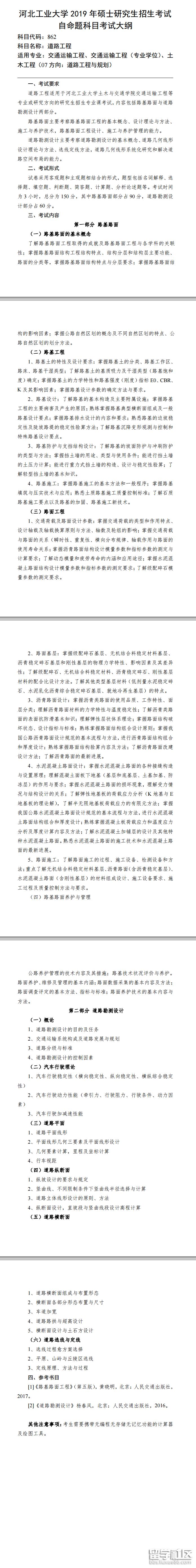 河北工業(yè)大學(xué)2019考研大綱:862道路工程