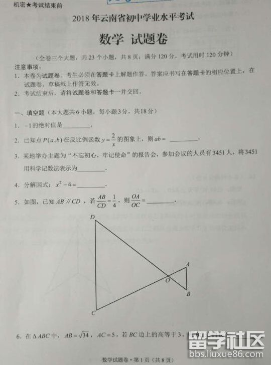 2018年中考結(jié)束了,考生們終于歇了一口氣,出國留學(xué)網(wǎng)小編為您準(zhǔn)備了《2018年云南麗江中考數(shù)學(xué)真題》,一起來看一看具體詳情吧。