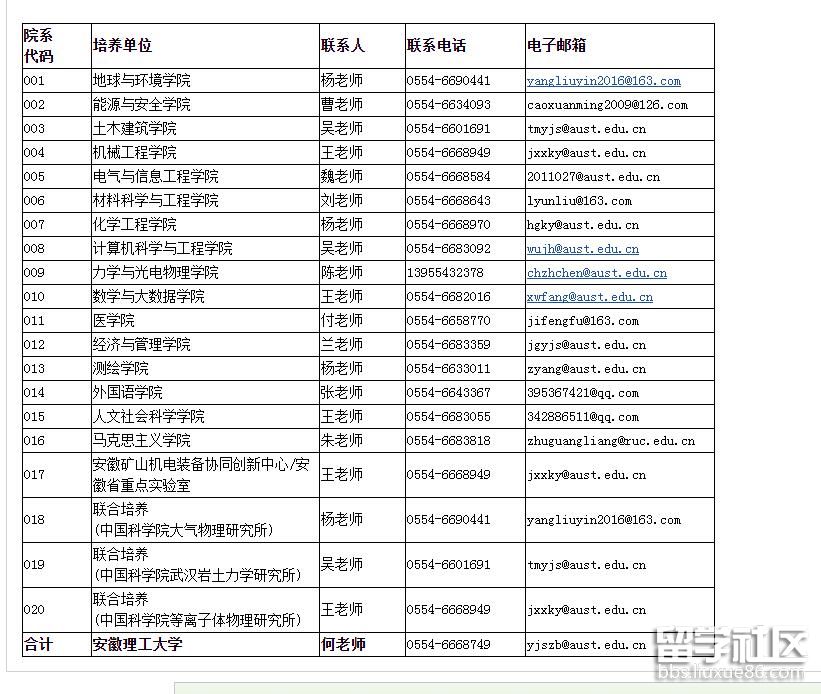 安徽理工大學2019年研究生招生單位咨詢聯系方式