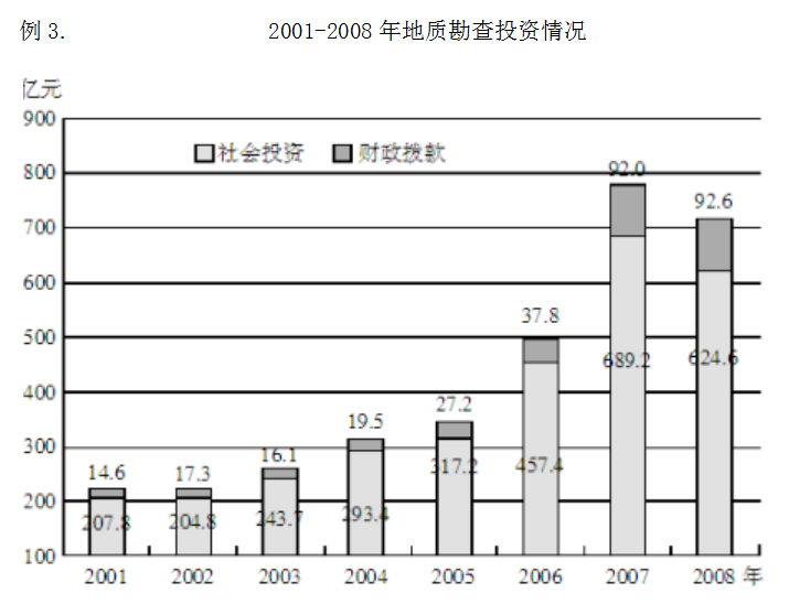 例3. 2001-2008年地質(zhì)勘查投資情況