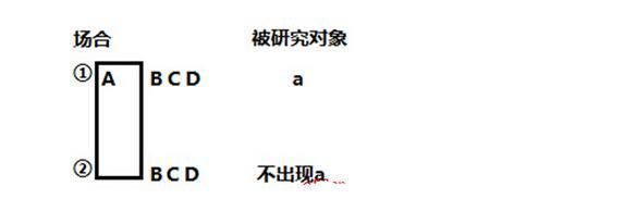 從上述模型中不難看出,求異論證其實和我們的實驗設(shè)計是非常相似的,在場合①(實驗組)和場合②(對照組)中BCD是相同的,唯一不同的情況是A。有A的有a的出先;無A的就無a的出現(xiàn);由此可見,結(jié)論是想說明A是被研究對象a出現(xiàn)的原因??雌饋磉€是很抽象,那么我們來看一個例子: