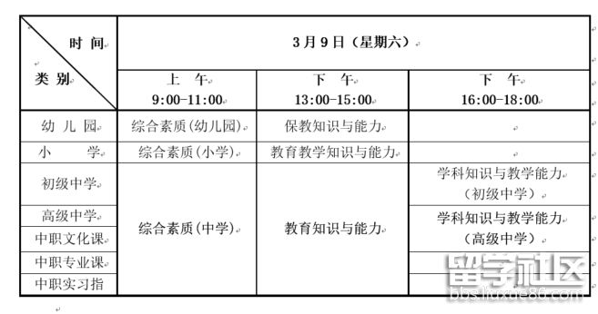2019年上半年中小學(xué)教師資格考試(筆試)日程安排表